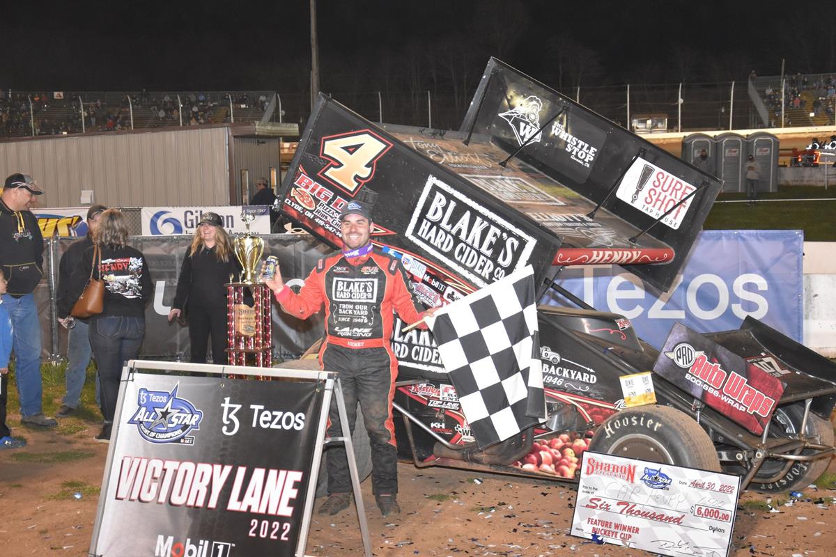 (Hartford, OH)…Sharon Speedway swung open the gates for the first time in 2022 on Saturday night as the Tezos All Star Circuit of Champions Sprint Cars presented by Mobil 1 made their first of four appearances of the season. Celebrating their wins in the Hovis Auto & Truck Supply victory lane on Bala Management Night were Cap Henry-All Star Sprints and Jeremy Double-Whelen Econo Mods. Special thanks to Krill Recycling, who added $1,000 to the purse split amongst the top three finishers in the All Star feature.